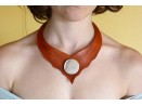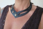 Collier en cuir noir, déco métal vieux laiton. Détails